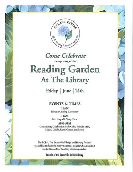 • Come Celebrate the Opening of the Bronxville Library Outdoor Reading Garden
