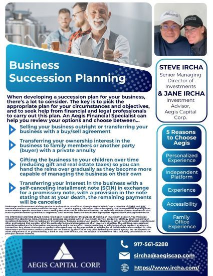 April 21, 2026: When developing a succession plan for your business, you must make many decisions. Should you sell your business or give it away? Should you structure your plan to go into effect during your lifetime or at your death? Should you transfer your ownership interest to family members, co-owners, employees, or an outside party? The key is to pick the appropriate plan for your circumstances and objectives, and to seek help from financial and legal professionals to carry out this plan.