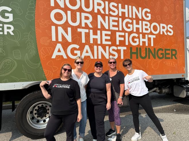 Twice a month JLB members join Feeding Westchester, an organization that supplies millions of meals a year to Westchester residents, to staff two mobile food pantries in Mount Vernon, distributing food to those who need a little help to fill their refrigerators that week. "It is so rewarding when the repeat people who come through recognize you," says Caitlin DeFilipo, who co-chairs the Mobile Food Pantry partnership. Building these relationships is at the heart of what the JLB does.