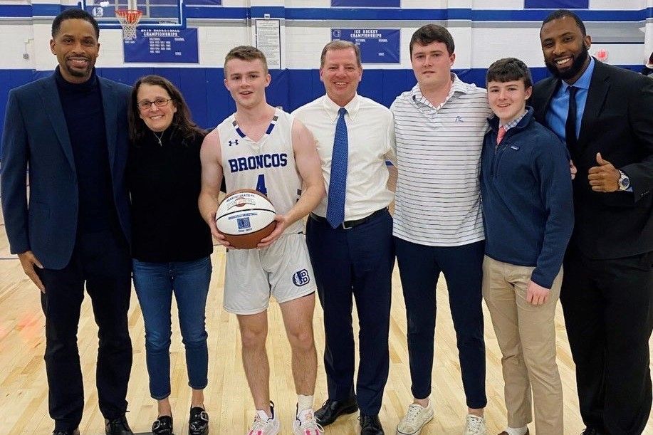 Feb. 15, 2023: Last week senior Sean McGrath joined an elite group of Bronxville basketball players when he scored his 1000th career point. In a home game against the Obama School on Senior Night, McGrath scored 22 points to bring his career total to 1012. He is only the fifth player to reach that milestone and joins Pat Dowd (1982), Tom Priore (1987), Alston Tarry (2018), and Chris Kelty (2022).
