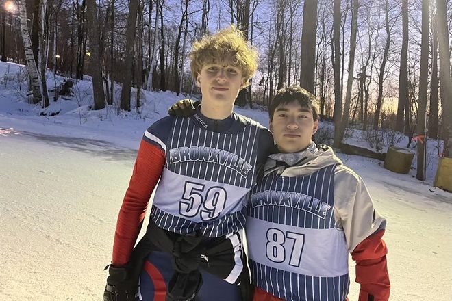The Section 1 Ski League is made up of 29 teams and broken down into three Divisions. The Bronxville team, which is combined with some students from New Rochelle, competes in the Southern Division. With so many teams competing and so few places to ski in the area, the Broncos had to head all the way to Patterson for their regular season meets at Thunder Ridge. Brooke Thompson and Lucy Sevin are captains for the girls’ team, and Ray Thompson and Andrew Wilmont lead the boys’ team.