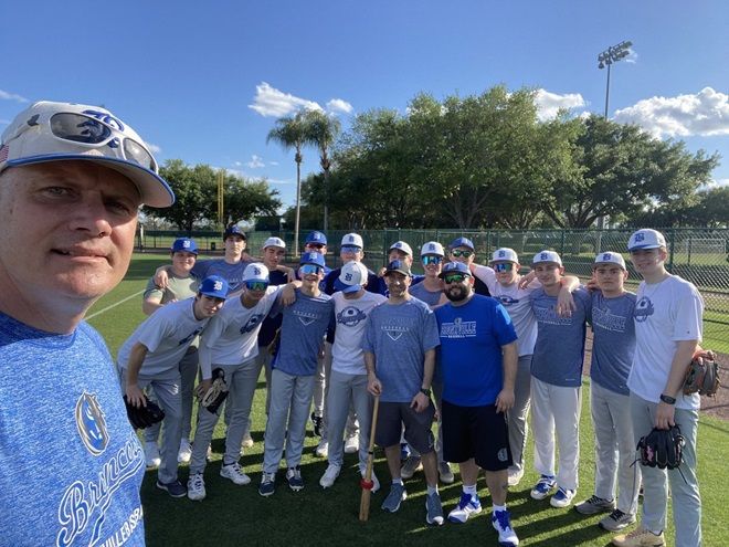 Coach Shultz, Assistant Coaches Mike Marino and Zach Miller, and the Bronxville baseball team in Florida. Photo by M. Shultz.
