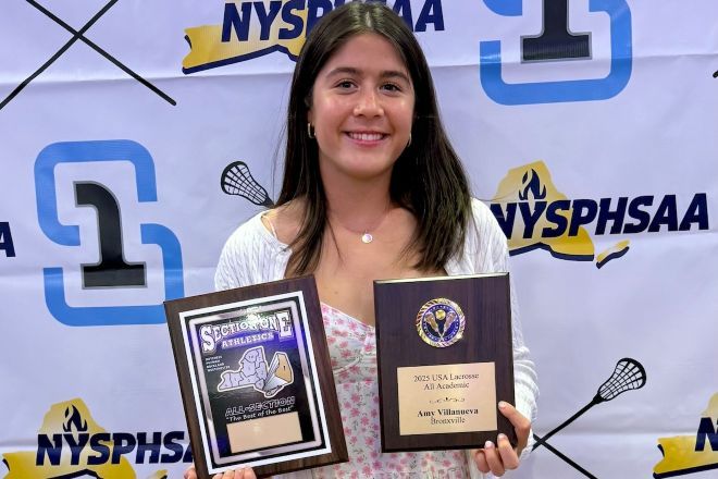 June 18, 2025: The Bronxville High School is buzzing with excitement as one of their own, senior Amy Villanueva, has been named as an Academic All-American for lacrosse. In Section 1, there are nine players named Academic All-Americans and nine who are named All-American.