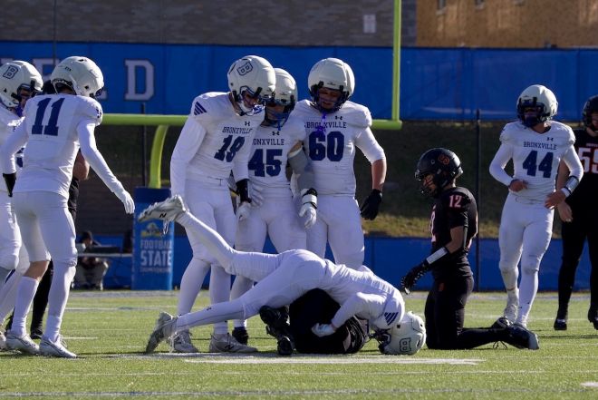 Dec. 3, 2025: Bronxville continued its commanding postseason run with a decisive 49-16 win over Schuylerville in the state semifinals. The Broncos have been unstoppable from September through November, and Saturday’s performance showed they have no plans of slowing down now.