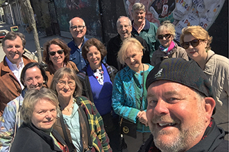 Pictured here: Marty Merchant takes a selfie with Bronxville Adult School students who took the Bushwick tour last year.