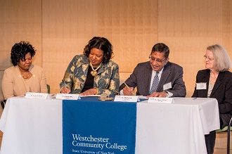 Apr. 20, 2016: A ceremony was held this week between Westchester Community College and Concordia College to celebrate renewed and strengthened articulation agreements between the two schools.