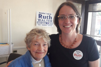 Pictured here: Ruth Walter, candidate for county legislator, with a campaign worker.