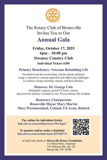 Oct. 1, 2025: Below is information about upcoming events in and around Bronxville. If you would like to thank an organization, make an announcement or be included in the MHTB listing of events, please send information to This email address is being protected from spambots. You need JavaScript enabled to view it.This email address is being protected from spambots. You need JavaScript enabled to view it.