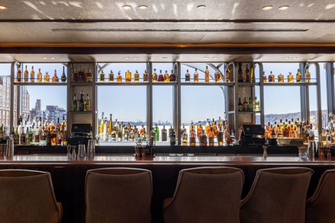 As you enter The Seafire Grill, you'll see the impressive "Wine Wall" as well as the sleek wooden bar. The restaurant is light and inviting, with floor-to-ceiling windows that enable diners to enjoy sweeping views of the George Washington Bridge, the Manhattan skyline, and the Mario Cuomo Bridge.