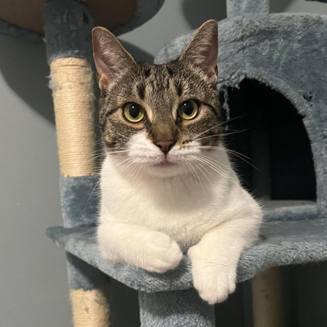 April 30, 2025: Meet Mew, a sweet 2 to 3 year old cat with quite the success story!