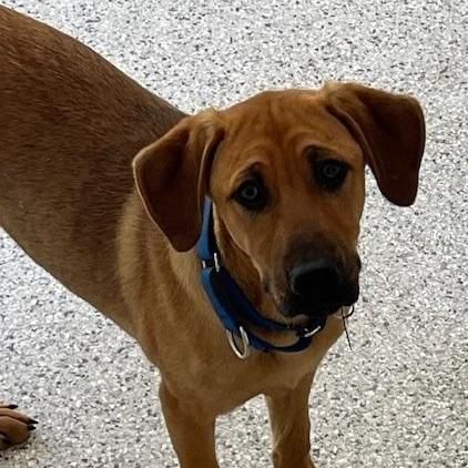 This hound mix, only 4 months old, was recently rescued from a North Carolina shelter alongside her sibling. Both were sadly given up but are now secure in a foster home, adapting well and displaying significant growth and character.