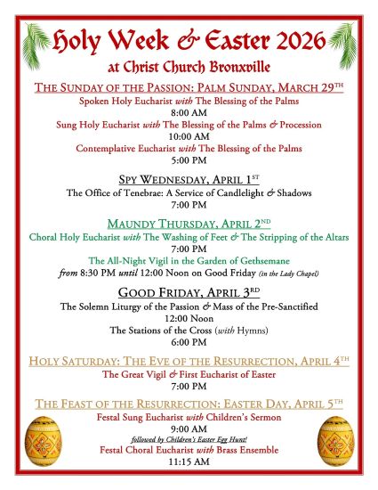 March 29, 2026: Below are links to information about Easter Services at churches in Bronxville.