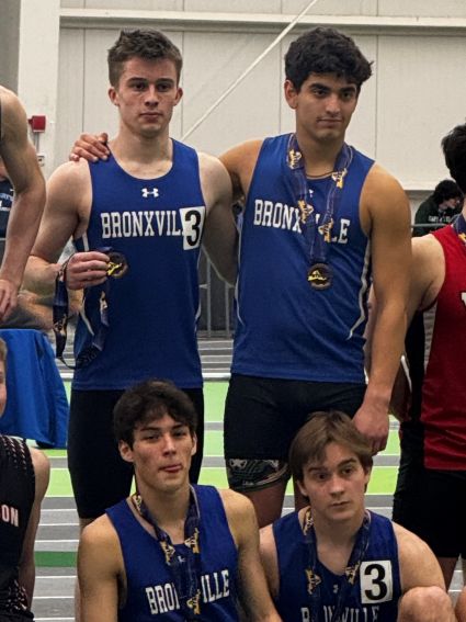 On Saturday, the Bronxville 4x800m relay teams delivered stand-out performances. The boys’ 4x800m relay placed 3rd at the State Championships in 8:05.99. The relay—led by senior captains Julian Gonzalez and Will Hogue and including junior Grant Patterson and sophomore Matthew Jensen—also qualified for the US Indoor National Track and Field Championships in Boston this weekend.