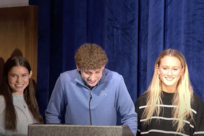 Athletic Council Co-Presidents (l to r) Maddy Stupart, Connor O’Brien, and Victoria McEnroe.