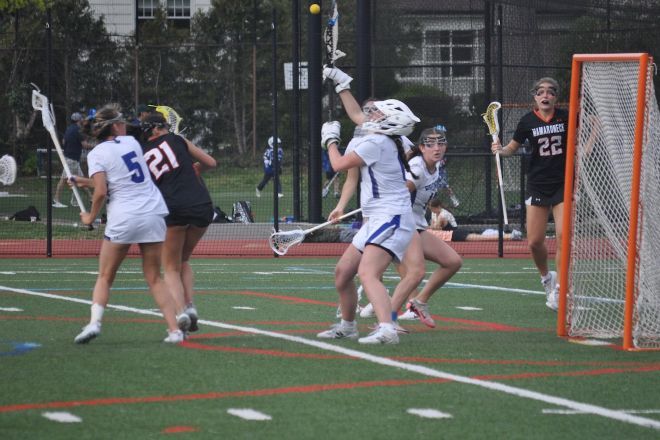 Great defense by goalie Michaela Doheny in the win over Mamaroneck yesterday. Photo by J. Murrer.