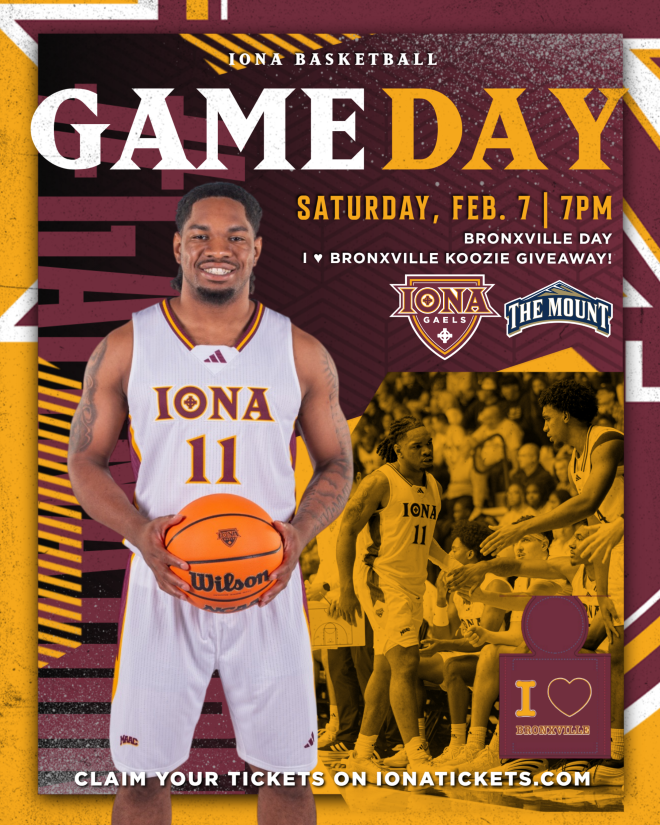 Feb. 2, 2026: Iona University looks forward to celebrating the Bronxville community during its men’s basketball matchup against Mount St. Mary’s in the Hynes Athletics Center on Saturday, Feb. 7, 2026. Doors open at 6 p.m.; tip-off is at 7 p.m.