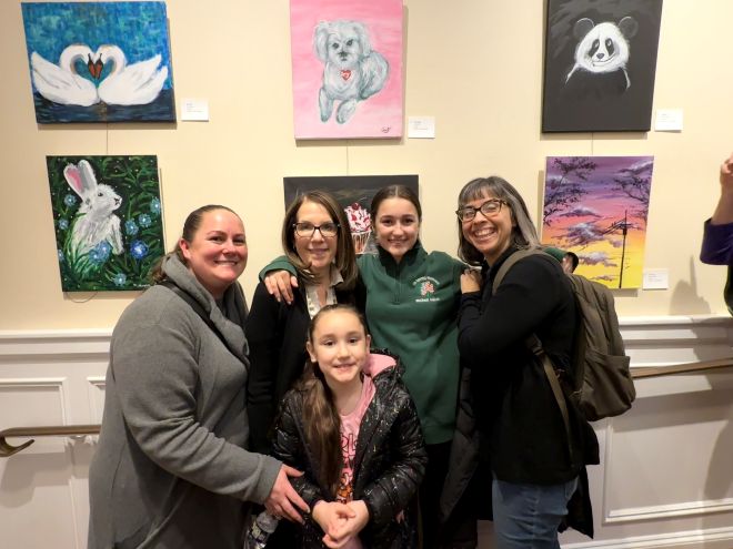 The joy was palpable for longtime student Magdalena Beale, who attended the show with three generations of family. Magdalena’s daughter, Sophie Russo, shared what the art class has meant to her mother. “What began as something new has become a joyful routine that leaves her feeling inspired, proud, and fulfilled. I get excited to help register her for classes each session. Ginny Yount’s classes are what she looks forward to weekly.”