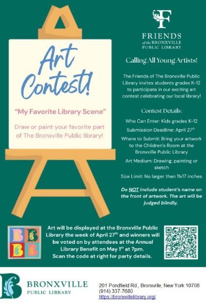 April 7, 2026: The Friends of the Bronxville Public Library invites students in grades K-12 to participate in an exciting contest celebrating the library!