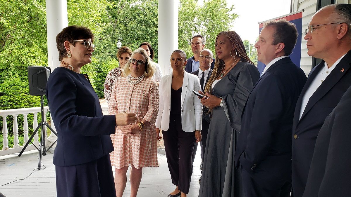 Pictured: Concordia Conservatory Executive Director, Kathleen Suss, speaking with (L-R) Mayor Marvin of Bronxville; Mayor Andino of Tuckahoe; Mayor Howard-Patterson of Mount Vernon; Mayor Mullen of Pelham; Eastchester Town Supervisor Anthony Colavita