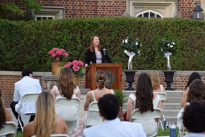 Parents were not permitted to attend the ceremony, as New York State's Department of Health (NYSDOH) restricted in-person graduations to a maximum of 150 individuals. (Bronxville's Class of 2020 has 132 students). Some family members and guests watched from the sidewalk in front of the school, while hundreds opted to live-stream the hour-long ceremony from their air-conditioned homes.