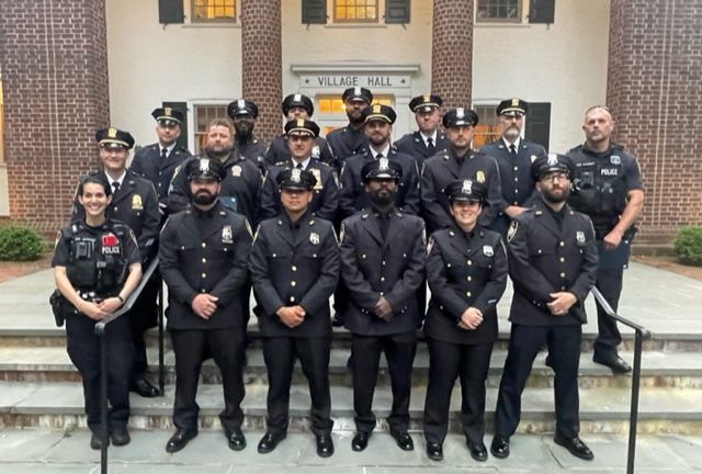 For the first time since 2019, presentation of police department promotions and performance awards took place during a ceremony with families at Village Hall on June 12. Chief Satriale and Mayor Marvin also commended the officers for their exemplary service to the community during the pandemic. Photo by A. Warner