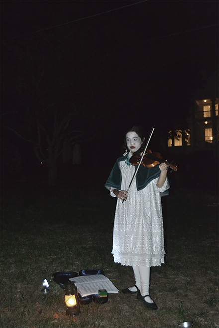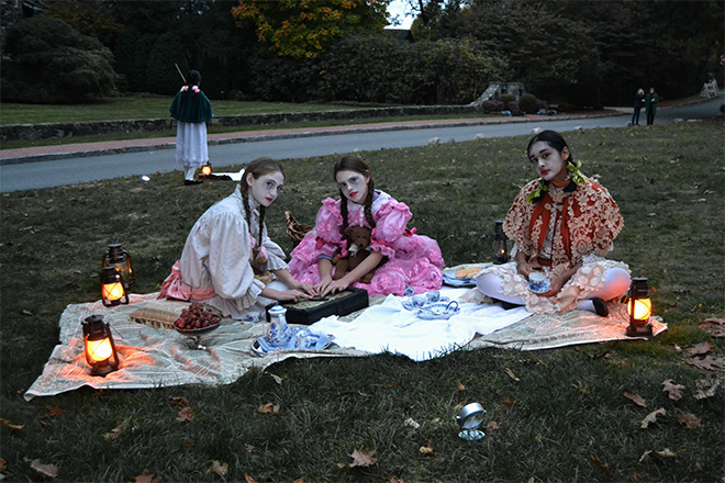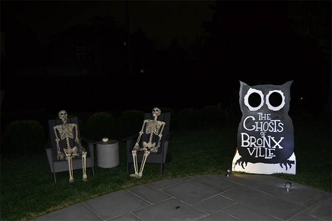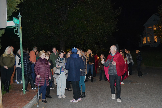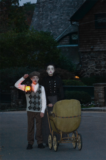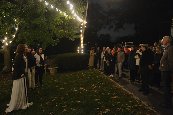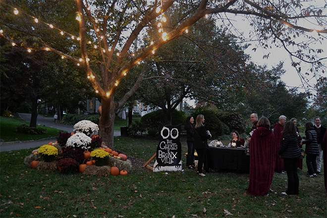 As twilight settled over the village, guests embarked on a guided journey through four historic homes, where they listened to spectral tales from actors playing some of Bronxville’s well-known former residents. While walking across the hilltop, attendees also encountered junior ghosts played by Bronxville School students clad in period Victorian costumes.
