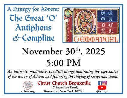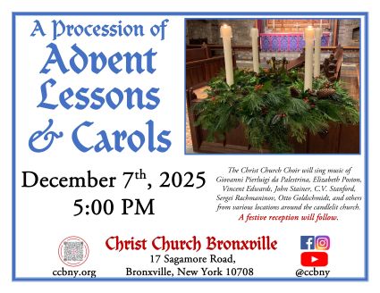 Dec. 7, 2025, 5:00PM: A Procession of Advent Lessons & Carols at Christ Church Bronxville, 17 Sagamore Road.