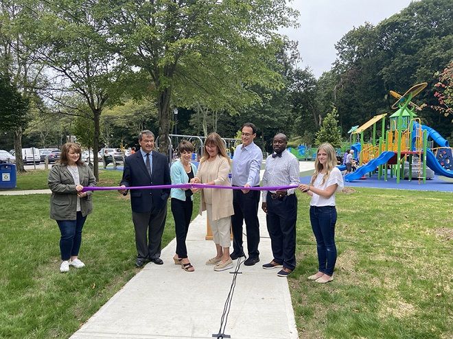 The new accessible playground replaced previous structures that were over 20 years old and features two new structures, one for children ages 5 through 12 and one for ages 2 through 5. The area also includes a new paved seating area with benches and picnic tables and the entrance features new landscaping with trees, flowering shrubs and perennials. New pavements and an increased number of new and accessible picnic tables have been added to the main picnic area.