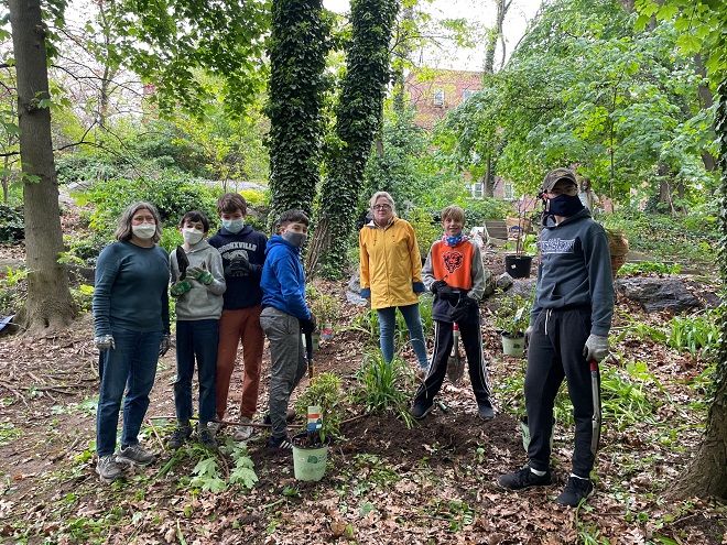 The new plants will include a Redbud tree, five Mountain laurel, two inkberry shrubs, a Pepperbush, ferns, violets, Wood aster, Columbine, and Solomon seal.