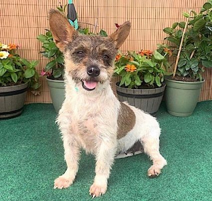 Named after a region in southern Romania, Oltenian is a 1 to 2-year-old female Norwich Terrier mix with warm brown eyes, pointy ears, and an irresistible personality.