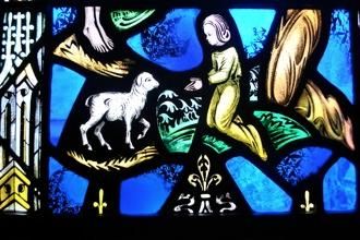 Pictured here: Detail of stained-glass window in The Reformed Church of Bronxville.