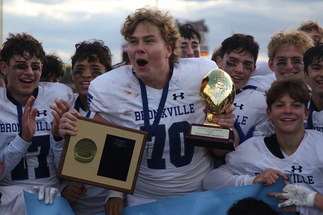 Nov. 15, 2023: The Bronxville football team was victorious over top-seeded Westlake on Saturday at Arlington High School to capture its first Class C Sectional Championship since 2010. The Broncos, who finished with a 3-4 record in the regular season, defeated Dobbs Ferry in the sectional semifinal 27-6.