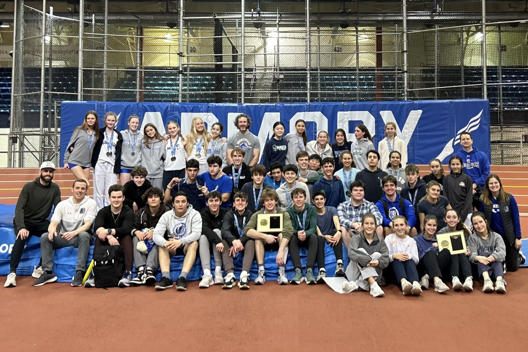 The Bronxville indoor track and field teams at the Armory for the Sectional Championship meet. Photo courtesy of @bxvboystrack.