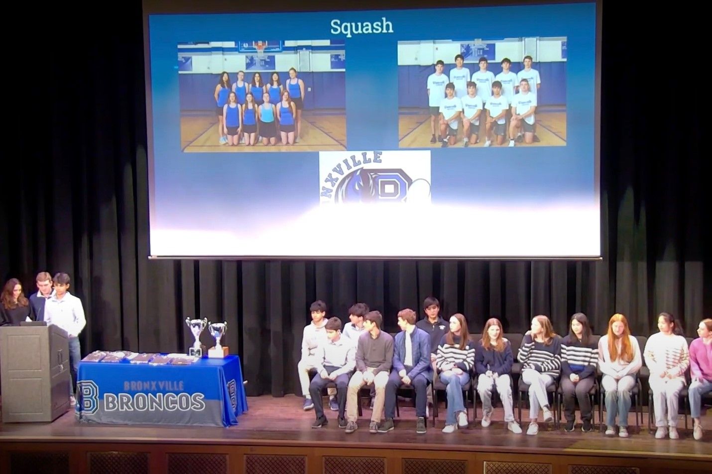 The boys’ and girls’ squash team at Winter Sports Awards. Photo courtesy of @BronxvilleSchool.