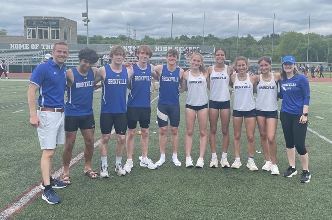 The Bronxville girls had ten first place finishes. Juliet Winiecki took home three individual medals in the 100m hurdles, the 400m hurdles, and the long jump, and the girls’ team also swept the relays. For the boys’ team, Wyatt Gravier won three events: the 100m hurdles, the 400m hurdles, and the high jump.