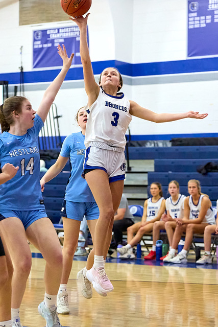 The past two weeks have been challenging as the Broncos dropped four consecutive games, including two overtime losses. Playing against defending state champion Ardsley, Bronxville held the lead with under a minute remaining in the second overtime, but the Panthers scored the game winning shot with just a half a second left. Bronxville also suffered a tough overtime loss to Westlake, 50-45, despite strong performances from Lulu Heathwood, who scored 16 points, and Ellie Fahey who scored 15.