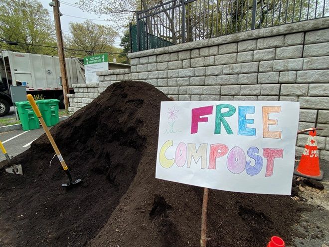 The compost will be available from Sunday, May 5 through Saturday, May 11 (while the pile lasts)! Bring your own container and shovel to the Food Scrap Drop-Off Site behind Village Hall (enter and exit Palumbo Place from Midland Avenue) and help yourself.