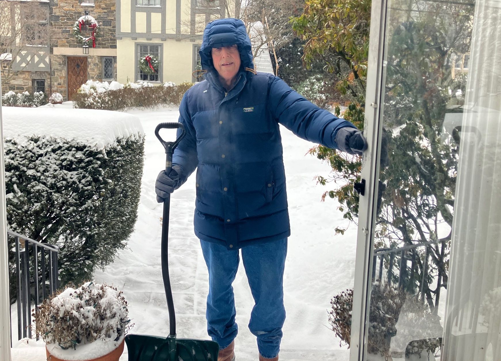 Peter Clifford pausing for a photo while shoveling the front walk at 2:30 today
